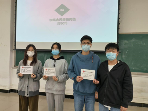 李雪斌在最后对加强学风班风建设,推进班级基础工程建设提出几点意见,首先要遵守相关的规章制度,这是形成良好的学风班风的基础;其次要求员工党员、员工干部在在学风班风建设中要有担当,树立服务意识,提高执行力,这是形成良好班风学风的重要保证;再次要求同学们要加强自身的职业生涯规划;最后要提高集体荣誉感,共同维护安全有序的学习生活环境,这是形成良好的班风学风的前提。