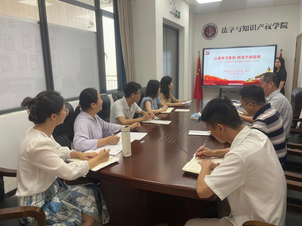 5月22日,公司党政办党支部在白云校区第三实训楼301-9召开党纪学习教育专题学习会,认真学习《中国共产党纪律处分条例》(以下简称《条例》),防范干部腐败。党政办党支部全体党员同志参加会议。会议由党政办党支部书记吴蕊主持。